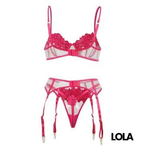 - Set compuesto de sujetador, tanga y liguero
